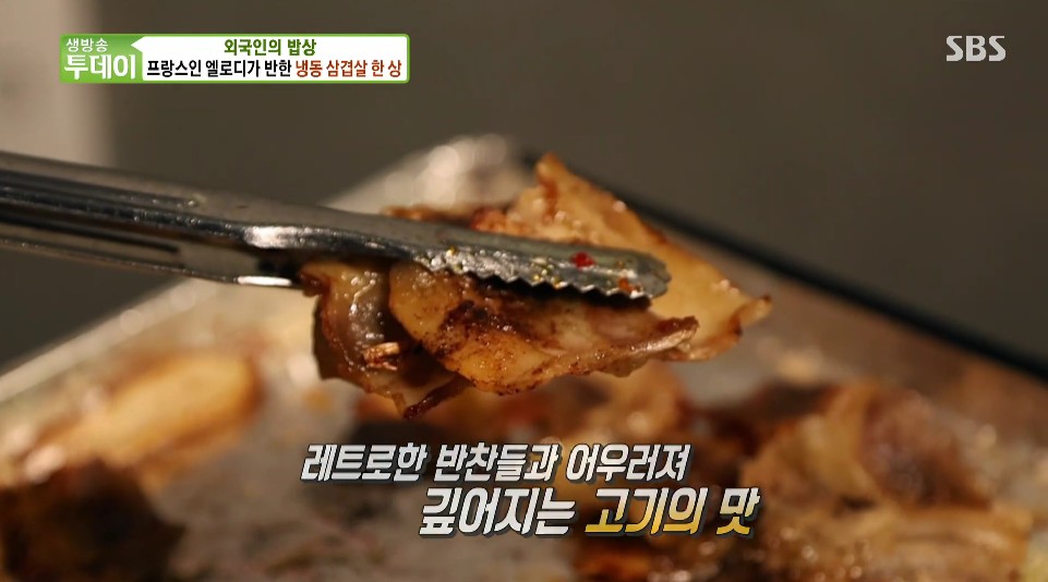 2025년 4월 24일 방송된 SBS <생방송 투데이> '외국인의 밥상' 코너에서는 프랑스 출신 엘로디가 반한 한국식 냉동 삼겹살 정식이 소개되었습니다.