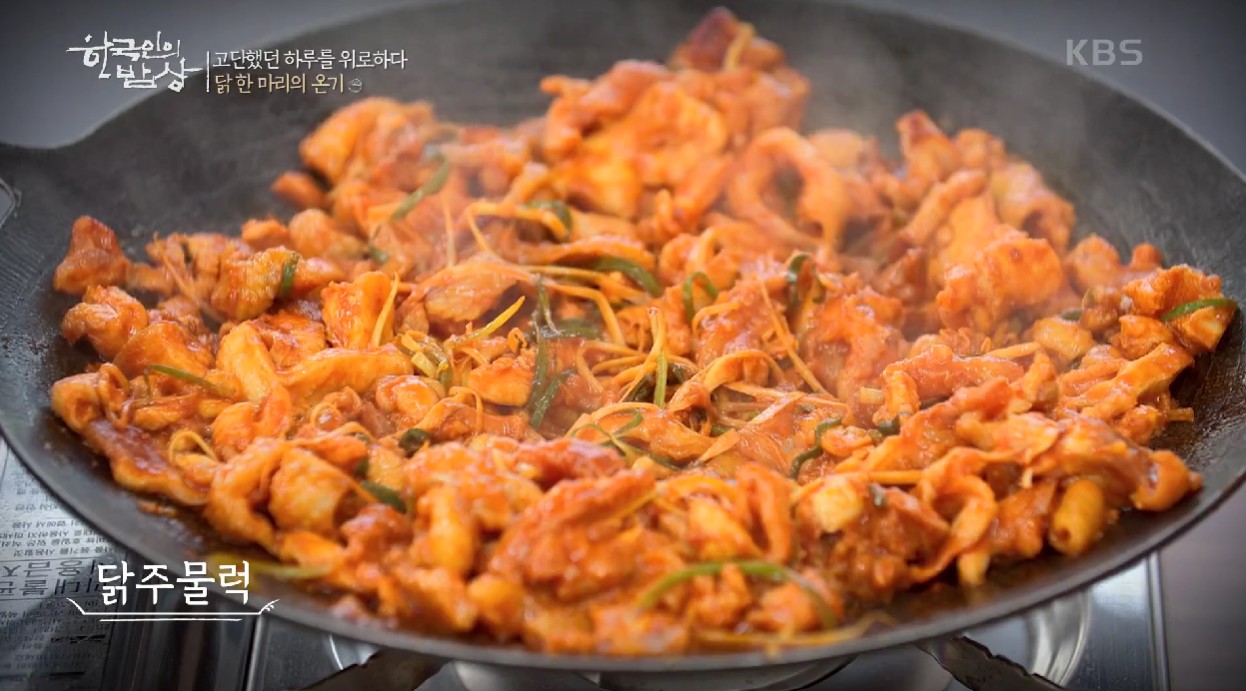 - 닭주물럭은 매콤한 양념과 신선한 채소가 어우러져 밥과 곁들여 먹기 좋습니다.