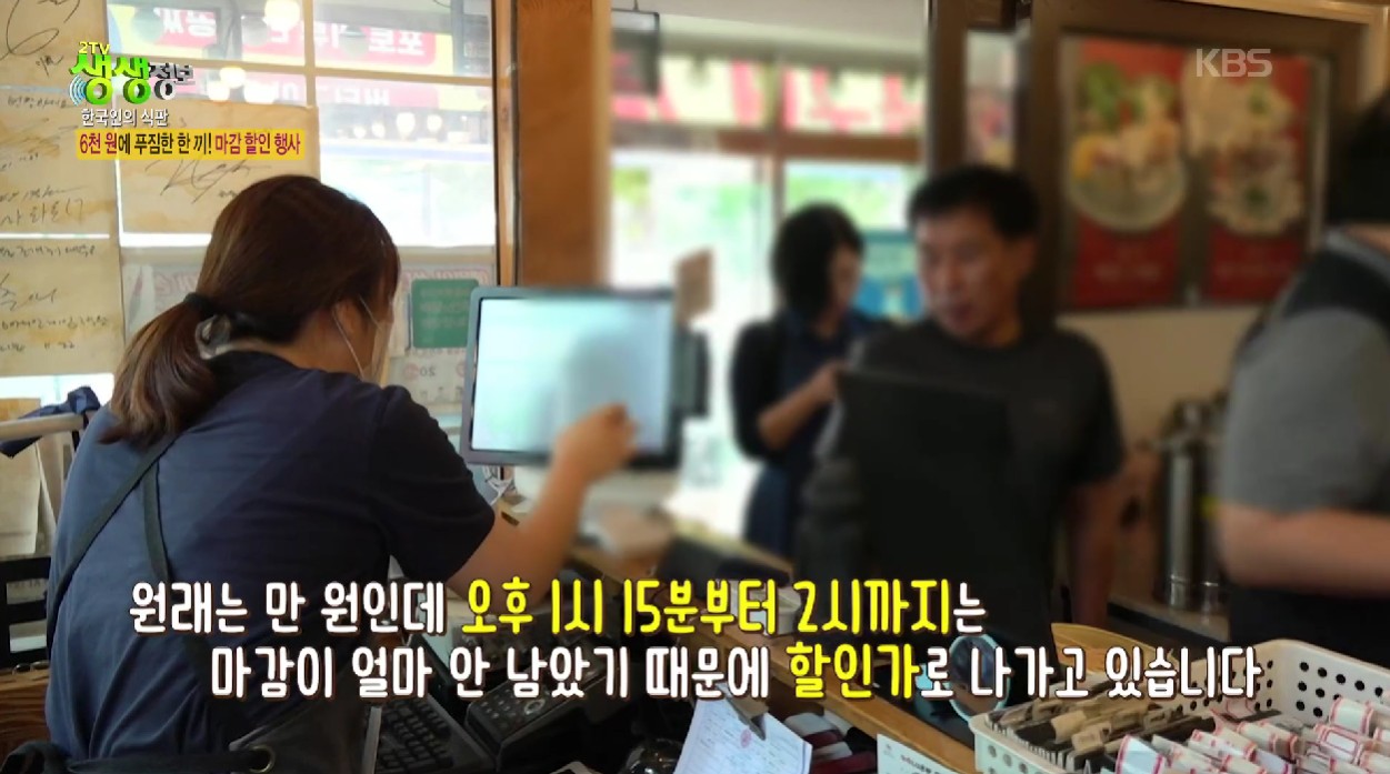 - 마감 이벤트: 오후 1시 15분 ~ 2시 00분, 45분동안은 6,000원에 식사 제공