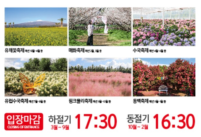 - 유채꽃밭과 동백정원은 야외 공간이므로 방문 전 제주 날씨를 꼭 확인